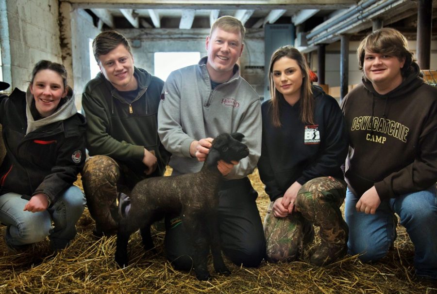 Jarret Jacobs of Munnsville holds one of the college’s new lambs. Jacobs is an agricultural business, bachelor degree student. (Photo by Allisa Coomey)