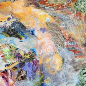 Inspired by natural objects and landscapes, Rosette incorporates organic materials and pieces of her digital photography into her paintings and collages, along with rice paper, acrylic, watercolor and pastels.