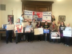 Group members announced they will be conducting a major grassroots mobilization to urge registered Democratic voters to support Bernie in the primary. Targeting Oneida, Herkimer and Madison counties, it will recruit people and organize a coalition of groups to knock on doors, host rallies and house parties, register people to vote, hold phone banks and organize on college campuses.