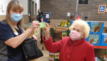 Aldi clerk Wendy Bain hands chairperson Lynne Ahnert the ticket stub naming the April winner of the Canastota Alumni Association’s six-month raffle drawing. The winning ticket belongs to Jim Caldwell, owner of Caldwell Insurance Agency in Canastota. Congratulations, Jim! Two more drawings to go. Good luck to all who hold tickets!
