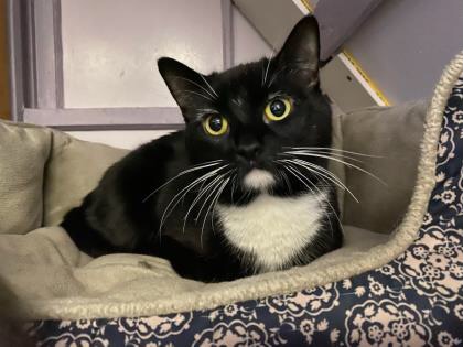 He also has extra toes that make his feet look like cute little mittens! Jet is selective with which cats he gets along with, but we think a home with submissive cats could work for him. He can be dog tested upon request. A home on the quiet side is best for him as too much commotion makes him nervous. Please fill out an application online if Jet seems like the kitty for you!