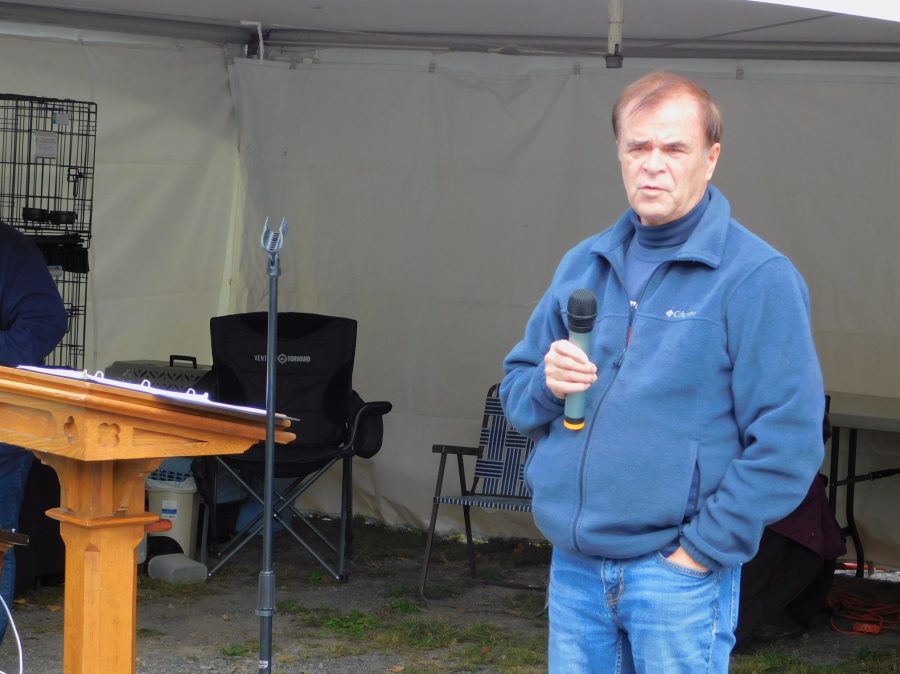 What started out as just Trinity Episcopal Church’s annual Blessing of the Animals near the feast day of St. Francis of Assisi grew into a much larger event this past Saturday, Oct. 2. Trinity member Ned Tudi wanted to also incorporate recognition and support for area veterans; Trinity Rector Fr. Jim Heidt readily agreed, and so “Blessing the Pets /Honoring the Vets” was born. Under Ned’s organization, the American Legion Post 140 agreed to provide their ample parking lot as a venue, and representatives from nearby VFW Post 600 and Clear Path for Veterans quickly joined-up, as well.