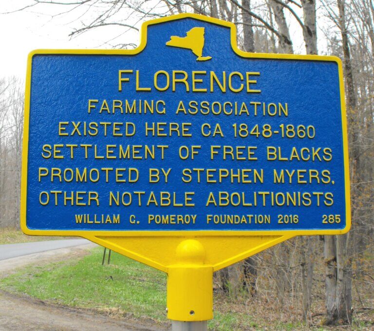 Pictured is the Florence Farming Association historical marker from the Pomeroy Foundation