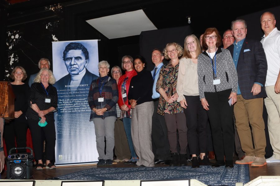 Nominated by nominations coordinator Ted Engle, E. Wyn James, the St. David Society of Utica, Oneida County History Center, Remsen-Steuben Historical Society and the Welsh North American Association, inductee Rev. Robert Everett of Remsen was celebrated by a Friday, Oct. 21, 2022, evening of Welsh music and poetry. Engle presented Everett’s symposium Oct. 22, and a large crowd of Everett descendants took the Induction stage to unveil the inductee banner.