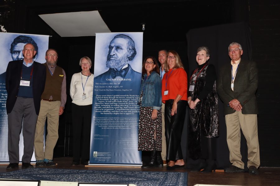 Inductee Calvin Fairbank’s great-great-granddaughter Lynn Fairbank presented her ancestor’s symposium during the afternoon symposia, and Fairbank’s great-great-great-grandson Justin Schlesinger presented on the Fairbank house museum in Dedham, Mass. Fairbank was born in Pike and is buried in Angelica. He spent most of his life in Ohio and Kentucky freeing slaves and being jailed and punished severely for his abolitionist activities. Fairbank descendants and sponsors joined the formal induction ceremonies Saturday evening.