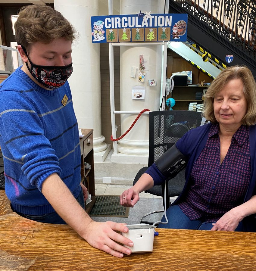 “One thing the pandemic showed us was how much libraries can support community health,” she said. “We became a trusted source during the pandemic to help people make medical appointments and helped bridge the digital divide for some older patrons. If people have no idea what their blood pressure is, they can borrow a cuff and try it out before they buy it. The stationary cuffs can be part of their routine.”