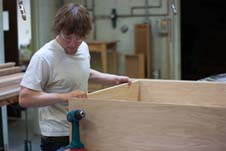 Supervising the cabinet making competition was Karl Driesel, an instructor in wood technology, who also served as a judge.