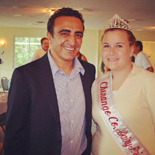 Pictured is Katelyn Smith the 2012 Chenango County Dairy Princes with Hamdi Ulukaya the founder of Chobani.