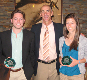 Pictured: Huber and Edmondson receive their award from Morrisville State College Athletic Director Greg Carroll.