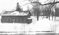 The north façade of Greene Smith’s Bird House is Peterboro. The bank of the Oneida Creek can be seen in the foreground and the home of Greene’s parents Ann and Gerrit Smith can be seen behind the trees in the background.