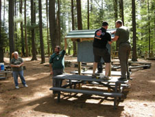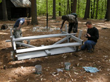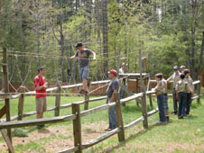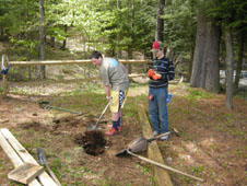 Scouts and volunteers worked side-by-side making improvements that fundamentally included erecting a new fence along the driveway to minimize traffic noise from Route 28, constructing a platform in the archery area, building canoe and kayak storage racks, repainting picnic tables, repairing fences and building fire pits in campsite villages.