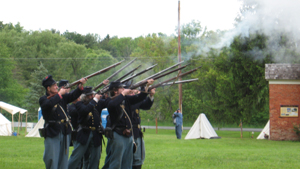 The 12th Regiment U.S. Infantry, Co. A, the military host of the 21st annual Peterboro Civil War Weekend, is a living history unit from Syracuse. The two-day event featured a military and civilian encampment on the green in the hamlet of Peterboro and included period music, entertainment, shopping, demonstrations, hamlet walking tours, programs, exhibits, period fashions, chicken barbeque, pancake breakfast, drill exercises, a Sunday sermon, daily skirmishes and a children’s area with games and toys.