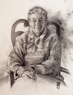 (Cazenovia, NY- July 213) William Benson has completed the portrait of Dorothy Riester that he began during the live demonstration on June 15 in the Stone Quarry Hill Art Park gallery. The framed portrait is now included in the exhibit which has been sponsored by Jim and Pamela McDonough and The Pluff Hooley Black Group at Morgan Stanley and will run through July 28.