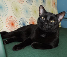 Winnie is a sleek, handsome, 2-3 year old, neutered male, black cat. He is sweet and affectionate and he loves to be petted. He gets along well with other nice kitties. Winnie is a little shy at first, and would love to find a gentle family!
