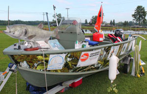 New York Sea Grant is bringing the 16-foot “made in New York” Discover Clean and Safe Boating educational vessel (pictured) with information from the national Stop Aquatic Hitchhikers campaign to the State Fair Aug. 30 to Sept. 2. The boat is seen here at the 2013 Empire Farm Days in Seneca Falls. (Photo by Brian P. Whattam)