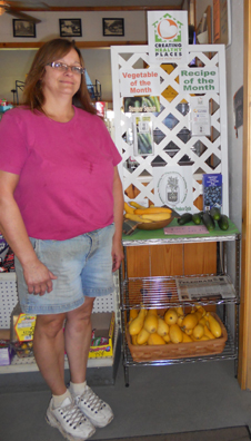 Darlene Siver, co-owner of the Norway General Store in Newport shows the “Vegetable the Month” display, as part of the “Creating Healthy Places to Live, Work, and Play” grant through Herkimer County HealthNet working with Cornell Cooperative Extension of Herkimer County.