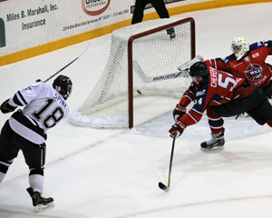 (Hamilton, NY – Dec. 31, 2013) After only one goal in the first 50 minutes of action, the Raiders scored three in the final seven minutes to earn a 3-2 come-from-behind win over the Russian Red Stars in an exhibition game on Tuesday.