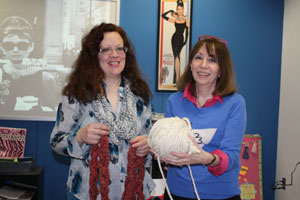 (Herkimer, NY – April 2014) Alice Curtis, a Business Administration major from Mohawk recently completed an Honors Program project “How to Finger-Knit” by presenting to several Fashion Buying and Merchandising classes on how to make a knit stitch as well as teaching students how to finger-knit a scarf. Curtis is a published author who wrote a knitting book “Knit Your Socks Straight” which is a follow up to “Knitting on two Straight Needles,” (Storey Publishing).