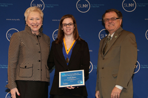 Amanda Watkins poses with her award with SUNY Chancellor Nancy Zimpher and Morrisville State College President Dr. William J.Murabito.
