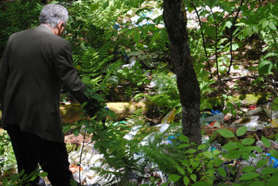 Following up on an incident report, Solid Waste Director James Zecca and Recycling Coordinator Sharon Driscoll were dismayed to find not only one site, but a continuous line of trash all along the roadside and in the woods.