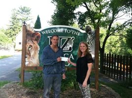 (Utica, NY- Aug. 2014) Mario Rotundi of Frankfort accepts the 100 Years of Fun Raffle grand prize from Melissa Ellis, the Utica Zoo’s Events and Visitor Experience Coordinator.
