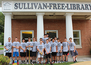 Pictured are Girls Varsity Soccer at Clearpath for Veterans; Varsity Cheerleading and JV Girls Soccer at Chittenango Creek Walk; Boy’s JV soccer team at Sullivan Free Library and JV Football Team at Oakwood Cemetery.