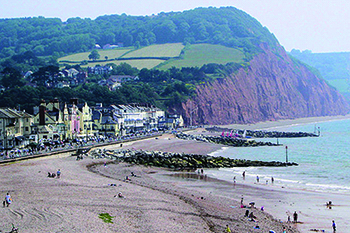 Looking east along the beach at Sidmouth, England (where Hezekiah Hoar was born). (Photo courtesy Wikipedia.com.)