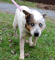 Max is a handsome, 8-year-old, white-and-red spotted Australian cattle dog. He is lovable and playful, but he is blind and hard of hearing. Max needs a patient, gentle family to help him navigate the world.