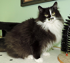 Miss Charlie is a gorgeous, 4-year-old, long-haired black-and-white cat. She is sweet and lovable, and she likes other nice cats. Miss Charlie has been waiting for a home for more than a year; please give this pretty kitty a home.