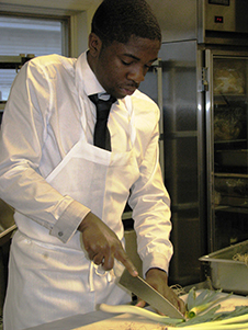Resort and recreation service management major Learie Peters of Jamaica chops leeks prior to the event.