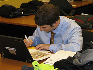 Resort and recreation service management student Anthony Rocco of Vernon prepares facts for his introduction about one of the Good Nature beers served.