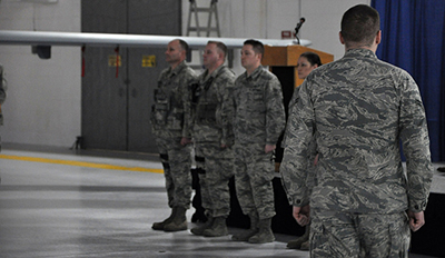 (Syracuse, NY – Jan. 2015) Members of the New York Air National Guard received recognition for their service in a combat zone on Saturday Jan. 10 during the 174th Attack Wing Hometown Heroes Salute ceremony for all units on the Air National Guard Base in Syracuse.
