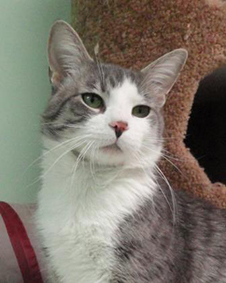 Asiago is a very cute, 1 year old, gray and white kitty. He is a sweet and lovable boy who is still as playful as a kitten. Come meet this fun loving boy today.