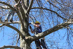 A student prunes a tree at Morrisville State, which was recently honored with 2014 Tree Campus USA recognition by the Arbor Day Foundation for its commitment to effective urban forest management.