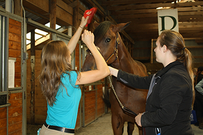 Students also prepped the horses before they headed to the show ring, bedded stalls, groomed, helped set up the business office, braided manes and put a coat of shiny black polish on yearlings’ hooves.