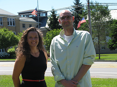 Margaret Collins, an individual studies student from Morrisville, right, and Nathan “Gabe” Armatas, of Skaneateles, former MSC assistant professor of chemistry, meet to discuss their summer research internship project titled, “Mass Balance Assessment of Chloride in Cazenovia Lake Watershed Using STELLA and Modelling Software.” (Photos by Franci Valenzano, Public Relations Associate)