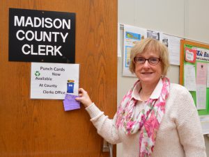 “We appreciate the County Clerk Denise Roe’s willingness to sell Solid Waste punch cards,” said Jim Zecca, director of the Madison County Department of Solid Waste and Sanitation. “This is a great fit, as the Clerk’s office, located in the County Office Building in Wampsville is centrally located and is open five days a week, which make it readily accessible to residents wishing to purchase Solid Waste punch cards.”