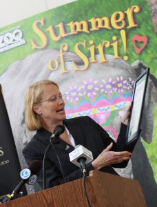 Friends of the Zoo President Janet Agostini announced the launch of a zoo fund-raiser, Pennies for Pachyderms, to benefit a cause close to Siri — Asian elephant conservation in the wild.