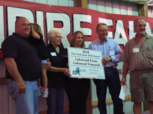 New York state congratulated Lakewood Farm and Lakewood Vineyards, located in Watkins Glen, Schuyler County, as the recipient of the 2018 State Agricultural Environmental Management Award. Each year, the award honors a New York state farm for its outstanding efforts to protect the environment through the preservation of soil and water quality and ensure the next generation of farming. This is the first time a New York state vineyard has been recognized with this long-standing award.