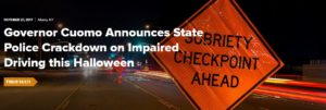 “Halloween is meant to be scary, but not when it comes to driving,” Hood said. “When it comes to drunken driving, Halloween can turn the roads into a horror fest. While we spend time trick-or-treating and hosting parties with our loved ones, law enforcement officers across New York state will take to the roads in an effort to stop impaired driving, prevent injuries and save lives.”