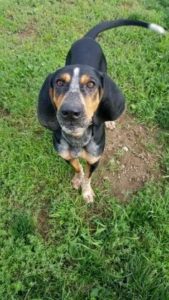 Kit is a 1 year old Hound Mix that just needs someone to love. He has always been housed outside as he is a hunting dog. He has lots of energy and he loves to wrestle. Because of him being so high energy and he is a working dog, he would need a home with lots of room to roam once he is trained, without other dogs or smaller children. Come down to see him, maybe you can have a mud wrestling match!