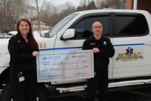 Two separate checks were presented for a total of $15,000; $10,000 was presented to the Community Memorial Hospital Auxiliary for their ongoing support of the hospital and $5,000 went to SOMAC for the purchase heart monitors.