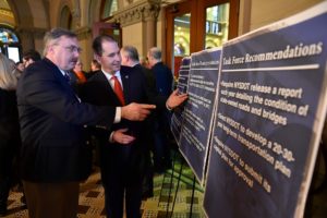 Miller said the plan’s highlights include an annual increase of $100 million for at least the next five years to the state’s Consolidated Local Street and Highway Improvement Program, strengthening PAVE-NY, Extreme Winter Recovery and BRIDGE NY, expanding the Clean Water Investment Act, and creating a new program to offer funding to support local governments’ efforts to improve infrastructure for drinking, storm and sewer water. Funding for these programs would largely come from the revenue raised by the state’s existing gasoline taxes and transportation-related fees, which are currently primarily used to pay off state debt, Miller said. The task force’s report also includes calls for the state Department of Transportation to create a 10-year capital improvement plan and to provide reports on the condition of infrastructure throughout the state. A full copy of the report can be viewed at goo.gl/Fqpttu.