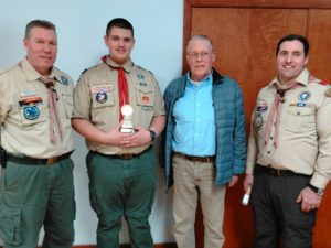 On Sunday, March 10, 2019, the Earlville Troop 5 Boy Scouts held their annual Scout and Scouter celebration; the event recognizes a Boy Scout who helps to lead the Troop and assist younger Scouts in the program.